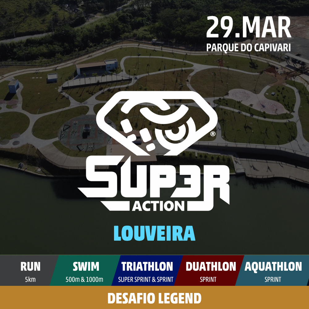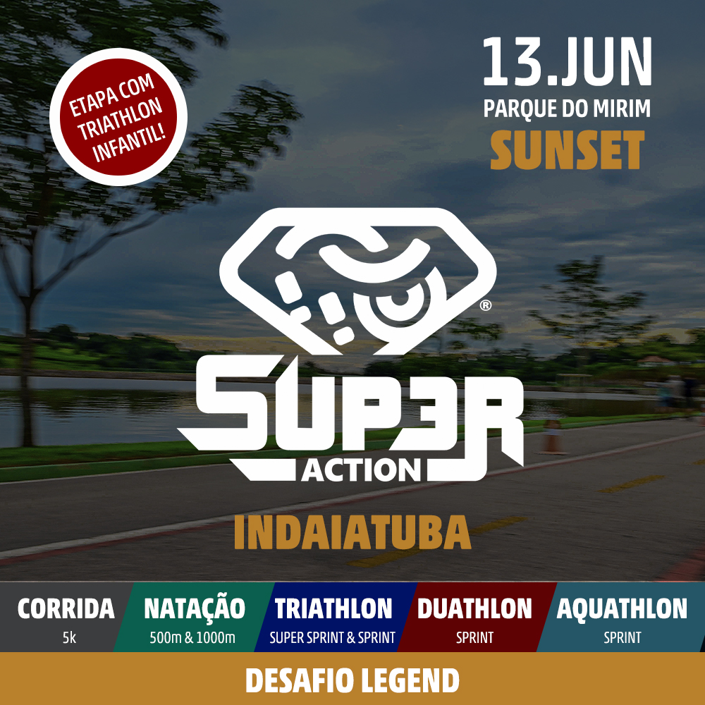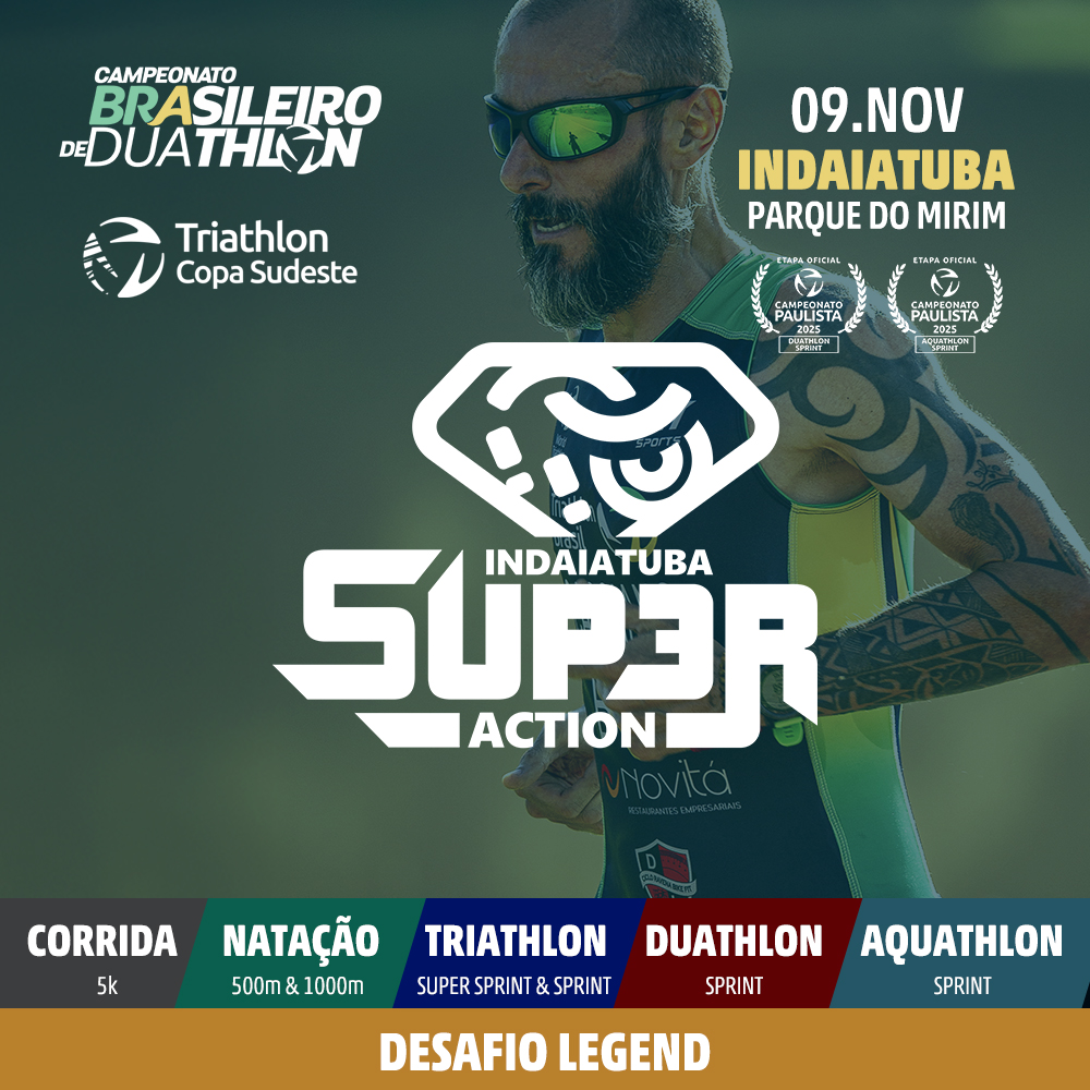 Chegou a hora de entrar em ação! No SUPER ACTION, não importa se você é novato ou veterano. Aqui, o desafio é na medida da sua vontade, e a vibe é de pura superação. Conheça nossas provas de corrida de rua, natação, triathlon, duathlon e aquathlon.